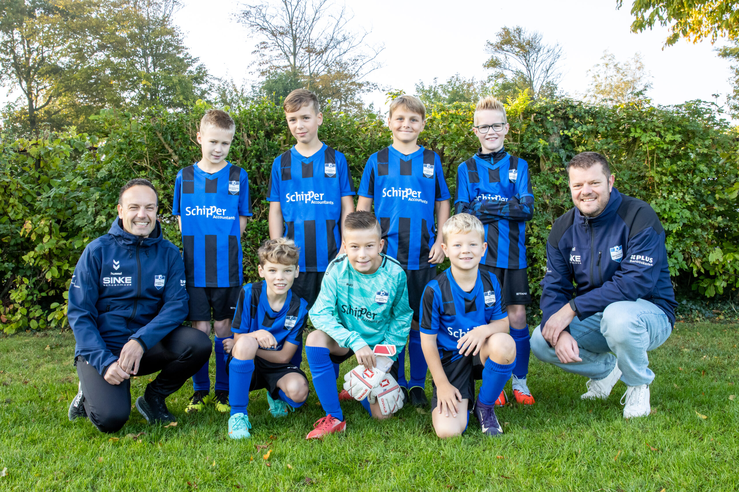 Voorste rij vanaf links: Ronald Ridderbos (trainer/leider), Luuk, Teun, Job, Michel Besuijen (trainer/leider)