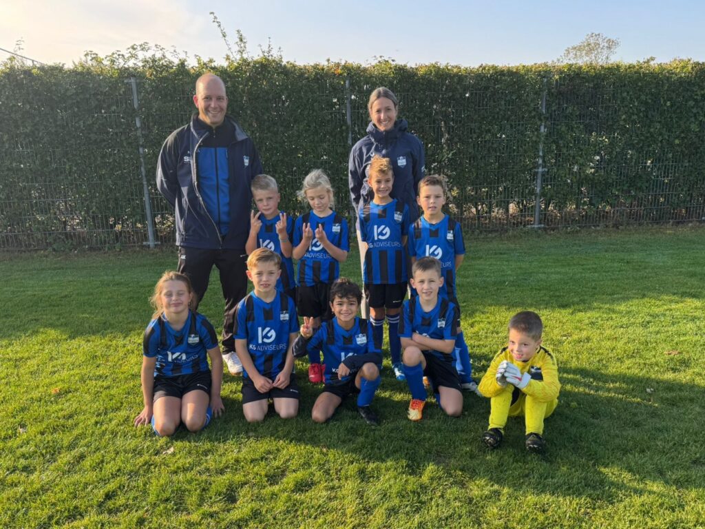 Achterste rij vanaf links: Arjan Koole (trainer/leider), Duuk Ridderbos, Fayenn de Nooijer, Lloyd Soolsma, Lilly Scherbeijn (leidster), Julan Koole.