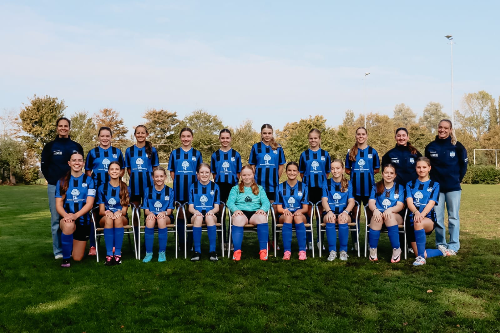 Voorste rij vanaf links: Sterre Alewijnse, Noor Verhulst, Manon Besuijen, Tessa Marinissen, Noor Vos, Saar Verhulst, Joëlle Joosse, Amy Huijbregtse, Mirte Gideonse.