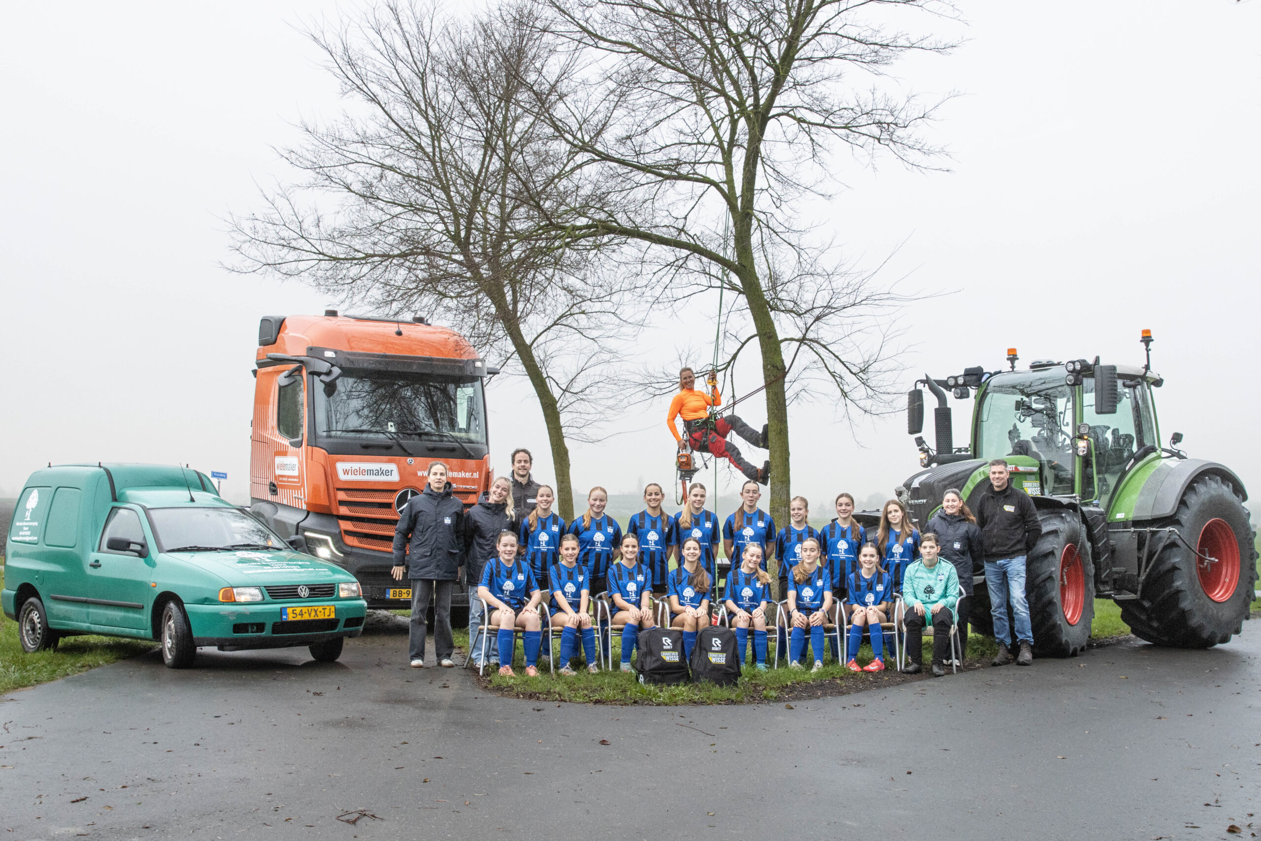 Achterste rij vanaf links: Chantal Moerman (leidster), Jasper Wielemaker (sponsor), Manon Arkesteijn (trainster), Fenna Riemens, Noor Vos, Arwhen Wielemaker, Fenna Mesu, Sterre Alewijnse, Evi Francke, Féline van der Vliet , Amy Huijbregtse, Angeline Verhage (trainster), Erik Wisse (sponsor).